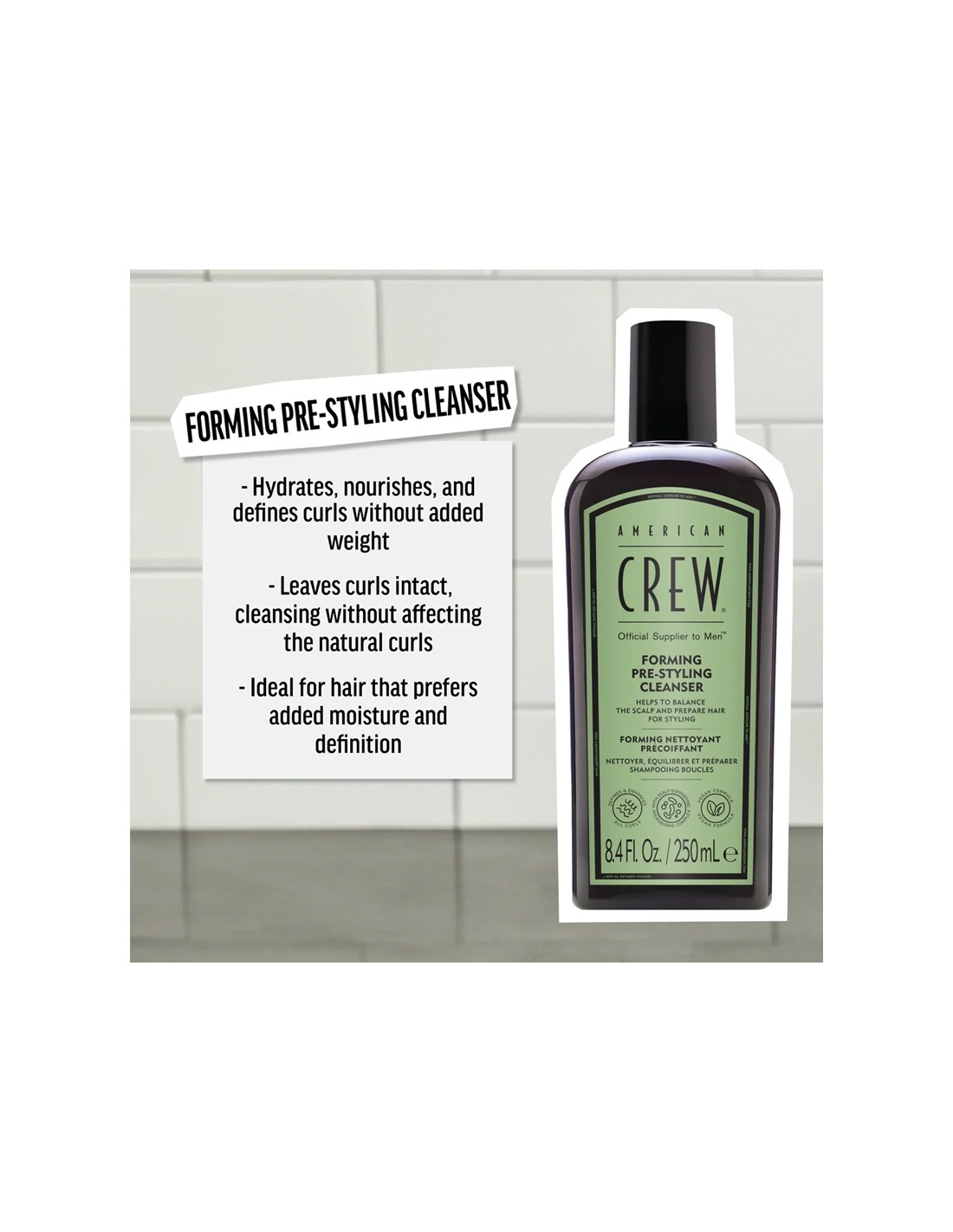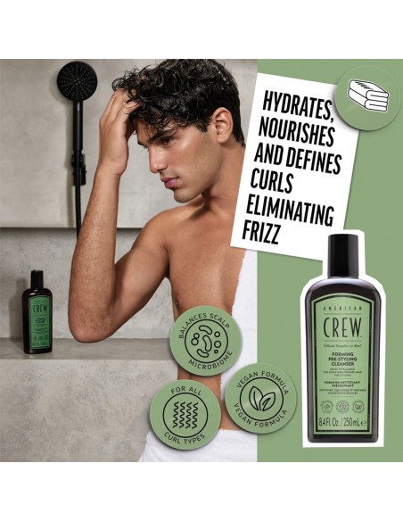 Prep hair for effortless styling with American Crew Forming Pre-Styling Cleanser, a gentle, everyday wash designed especially for textured, wavy, and curly hair. This vegan formula cleanses without stripping, helping to enhance natural texture, reduce frizz, and improve overall manageability.