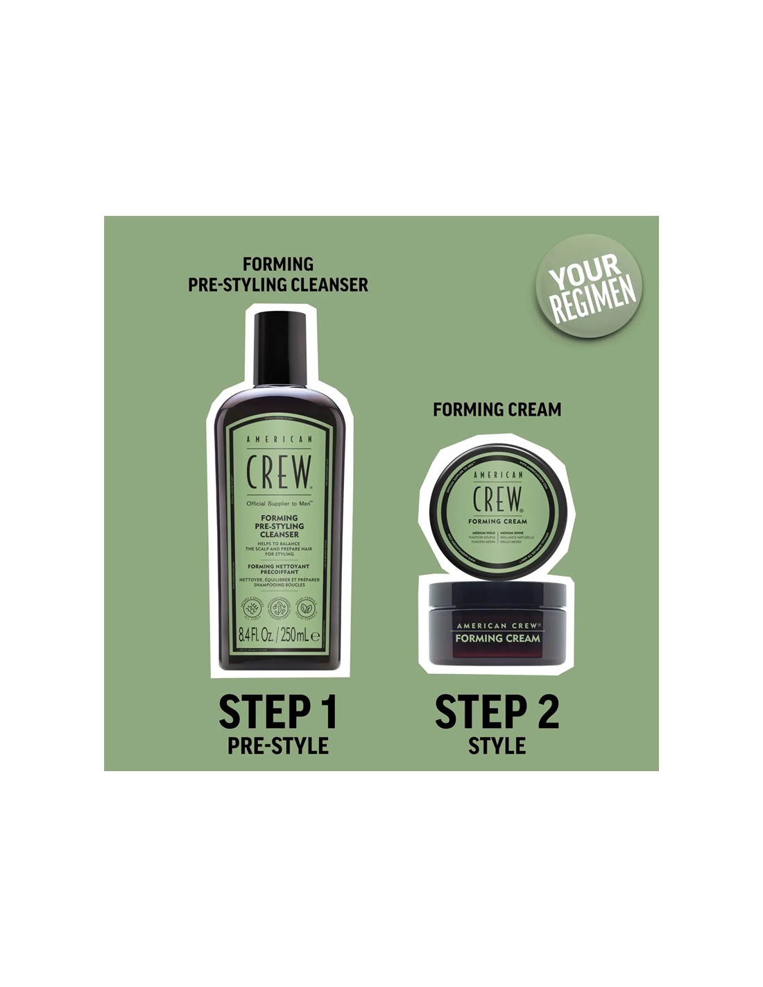 - Follow with your preferred American Crew styling product (e.g., Forming Cream) for best results.