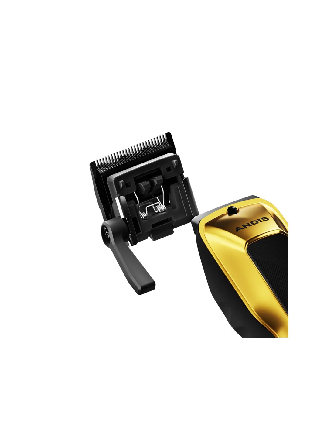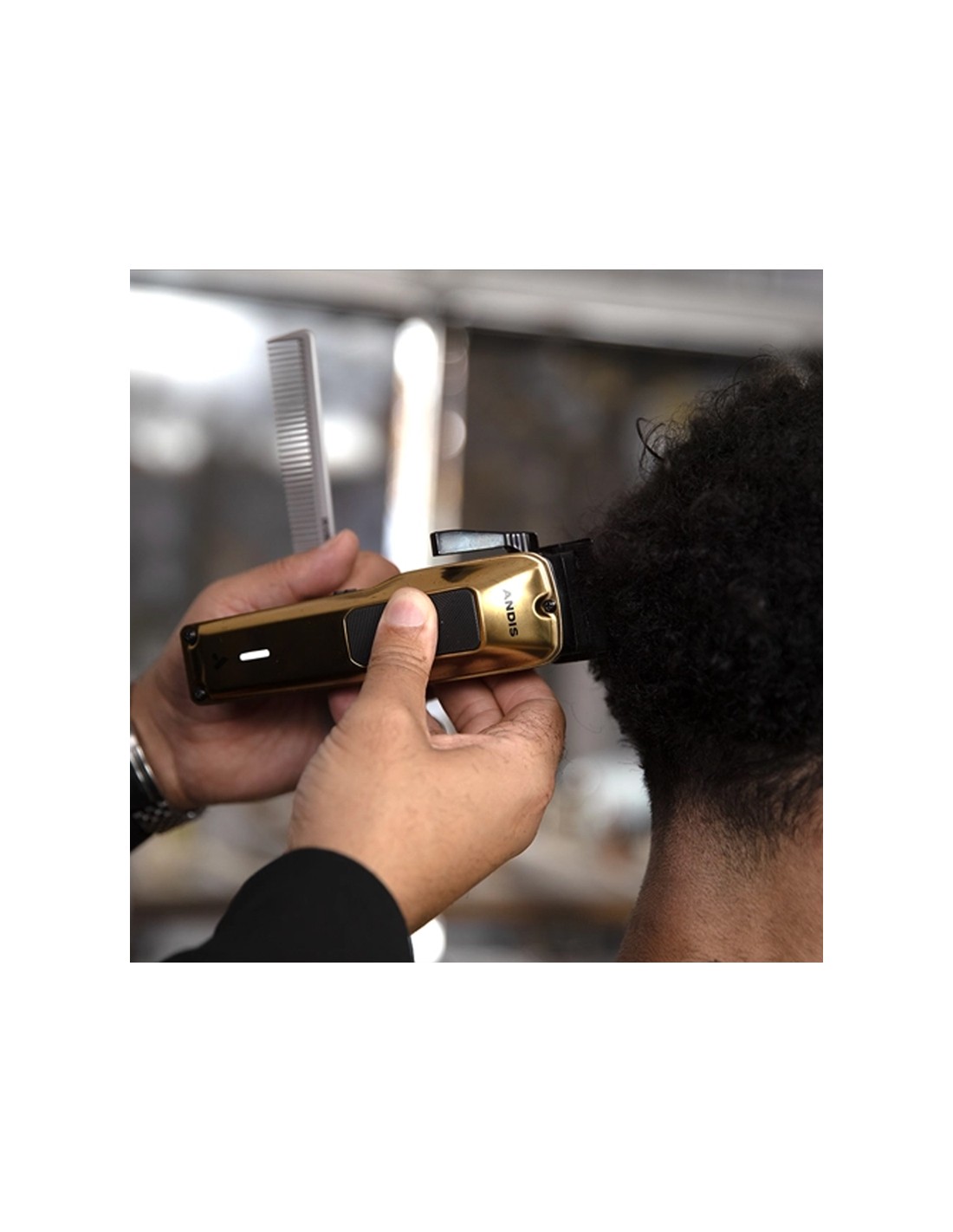 The Andis Phenom is a professional cord/cordless clipper built for high-speed precision, clean fades, and efficient bulk removal. Powered by a brushless rotary motor running at 7,000 SPM, it delivers strong, consistent cutting performance with reduced drag—ideal for continuous shop use. The Phenom also features customizable all-metal covers and grip options, plus a lever system that can be set to click or no-click adjustment for personalized control.
