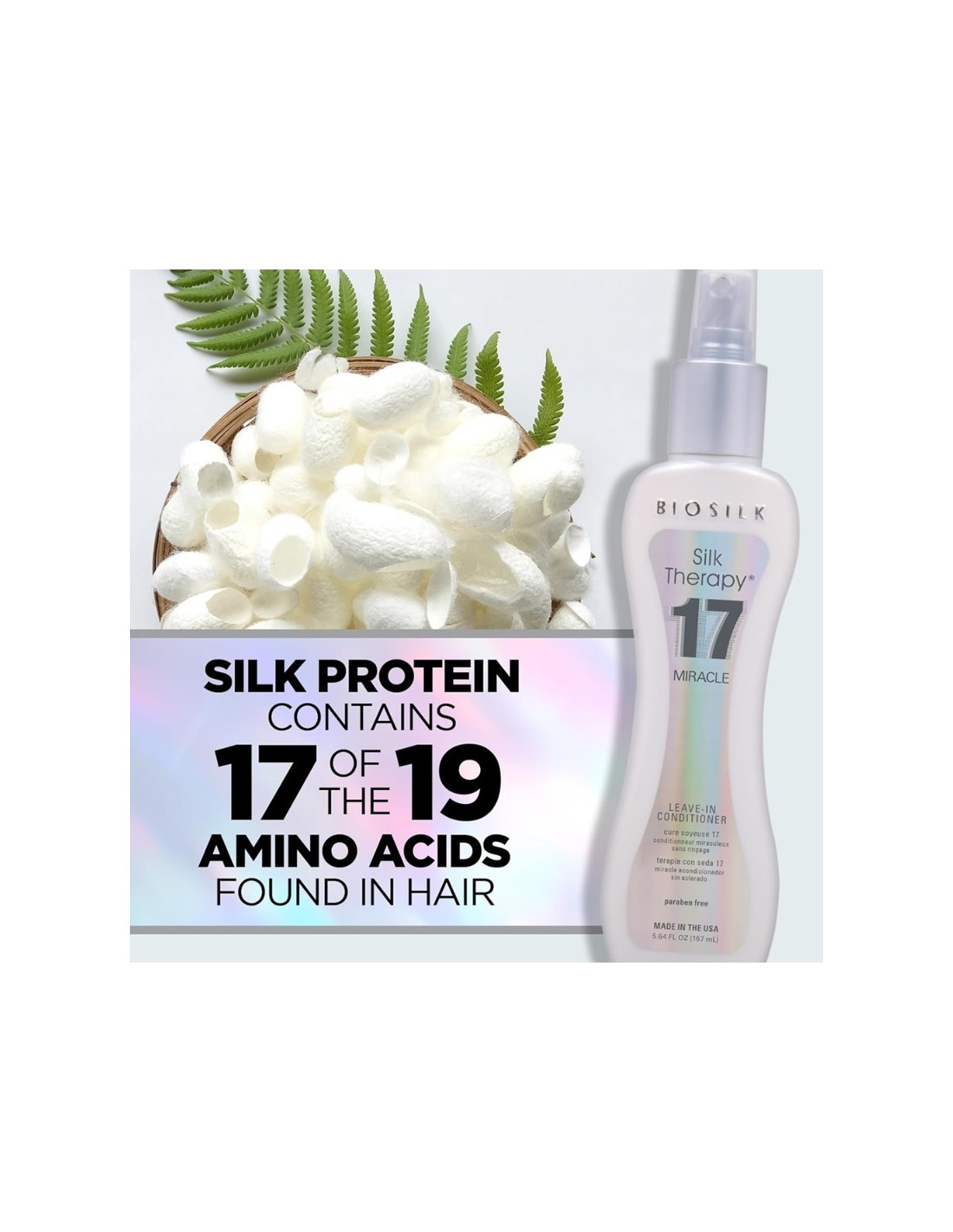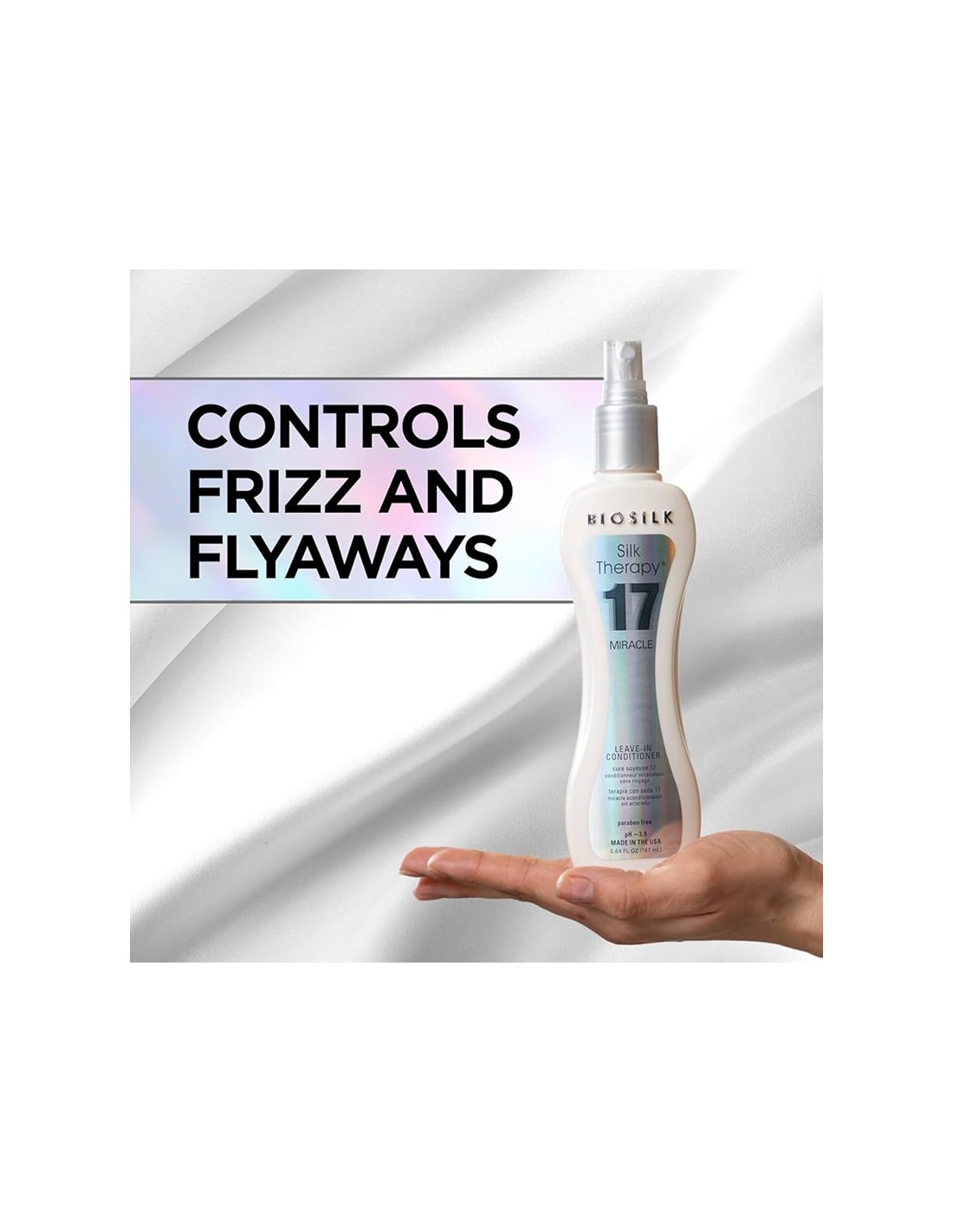 BioSilk Silk Therapy 17 Miracle Leave-In Conditioner is a multi-benefit conditioning treatment designed to improve the overall look and feel of the hair. Formulated with silk proteins, it helps hydrate, smooth, and protect hair while addressing common concerns such as frizz, dryness, and manageability. This lightweight, leave-in formula supports healthier-looking hair without weighing it down.