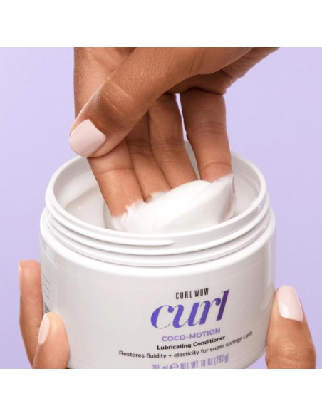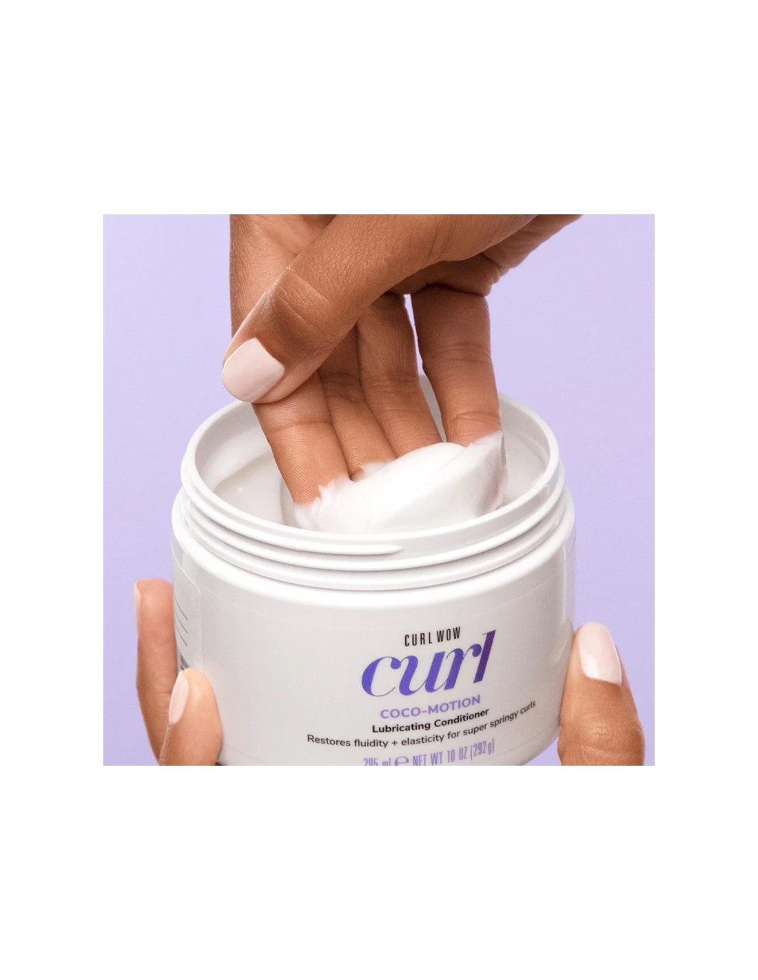 Curl Wow Coco Motion Conditioner is infused with Marula Oil, Coconut Oil, and Profaxil-18 Complex to lubricate the protein chains inside dehydrated curls, bringing back bounce, elasticity, and fluid motion.