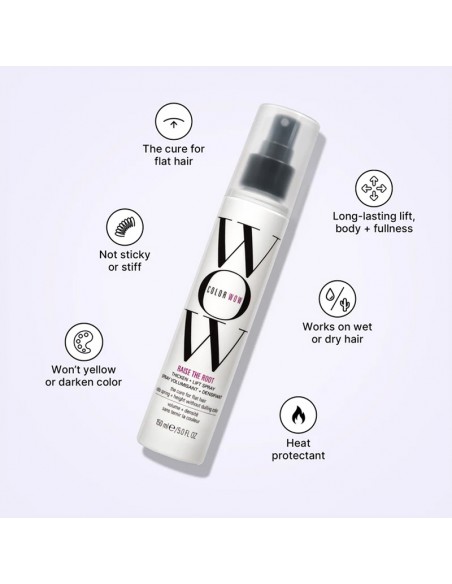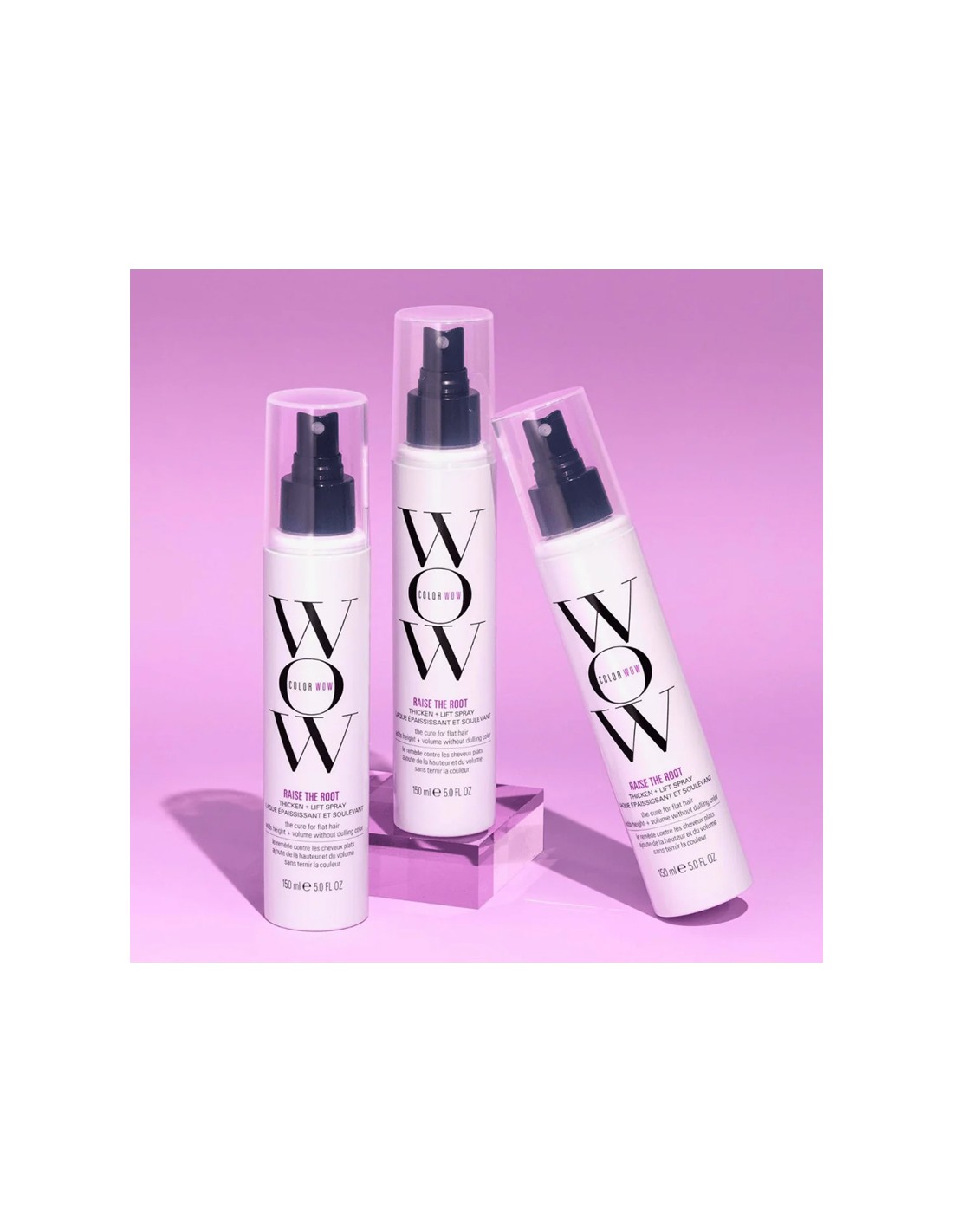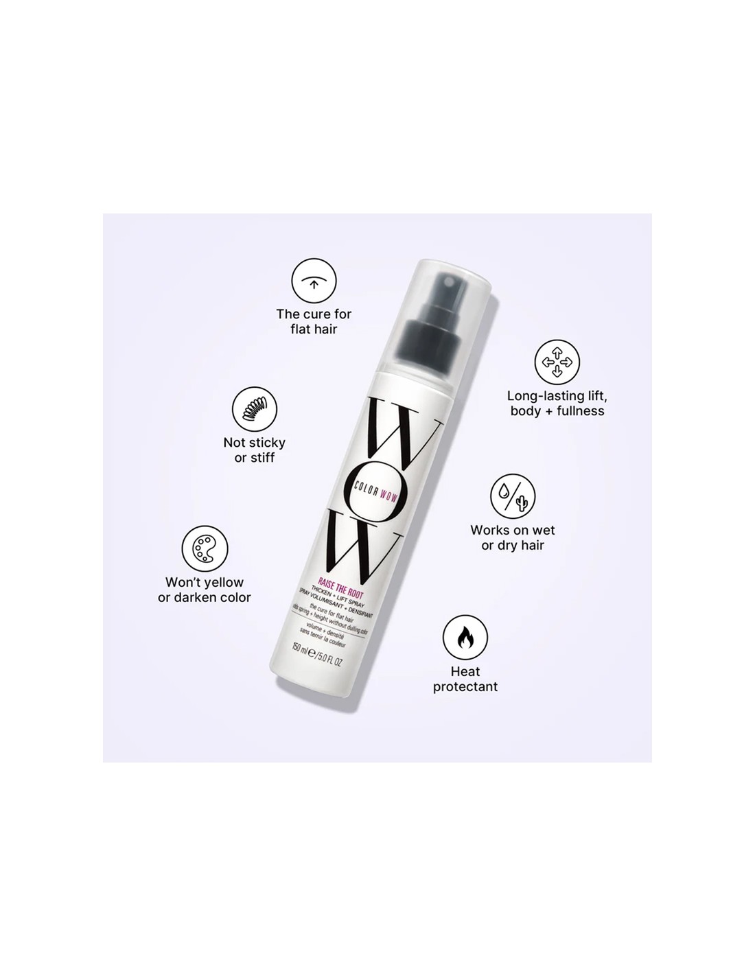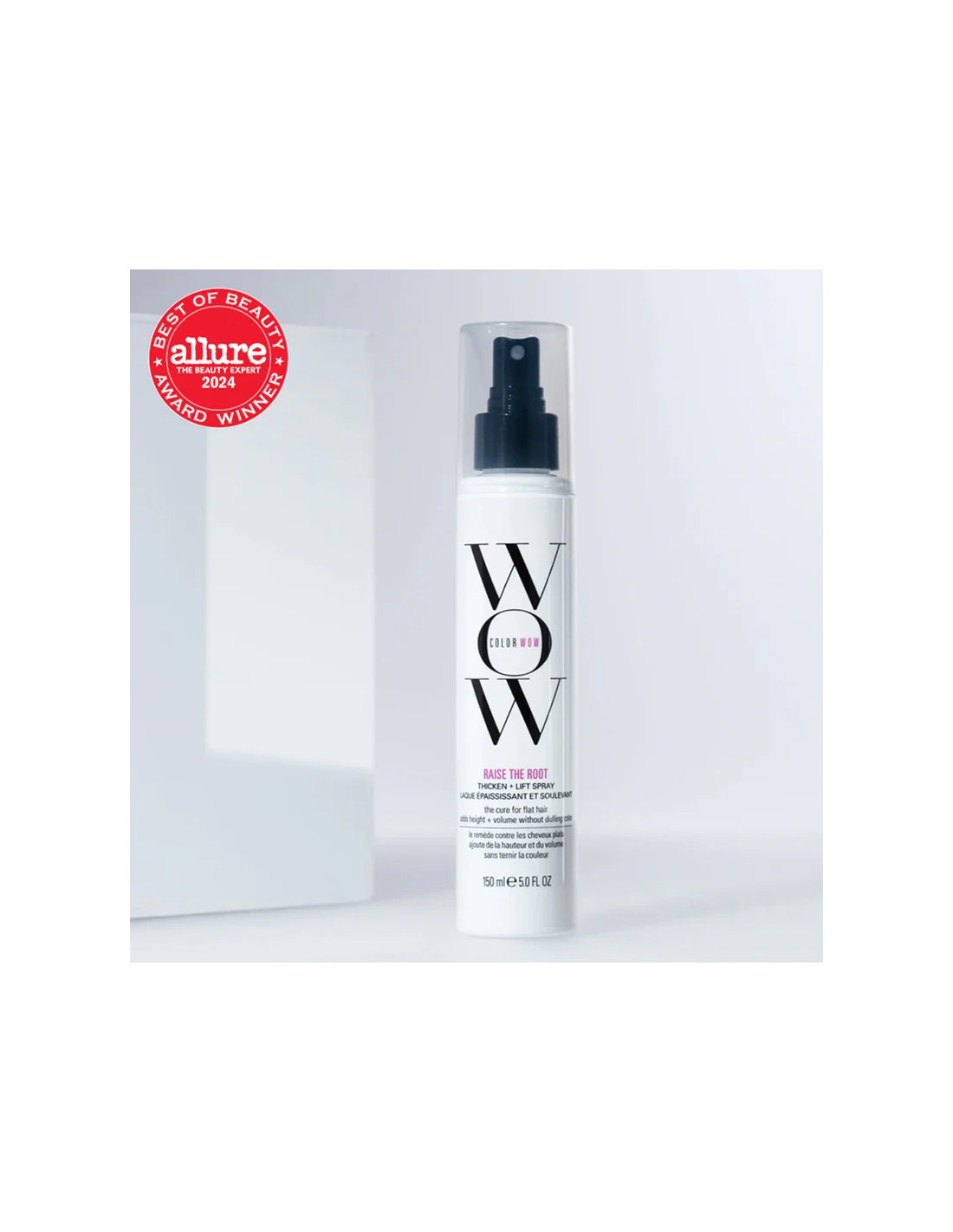 Color Wow's Raise the Root Thicken + Lift Spray is a styling product designed to add volume and lift to fine, flat, or thin hair without leaving it sticky or stiff. It utilizes unique flexible, translucent polymers that act like a spring at the root, creating instant lift and volume that lasts.