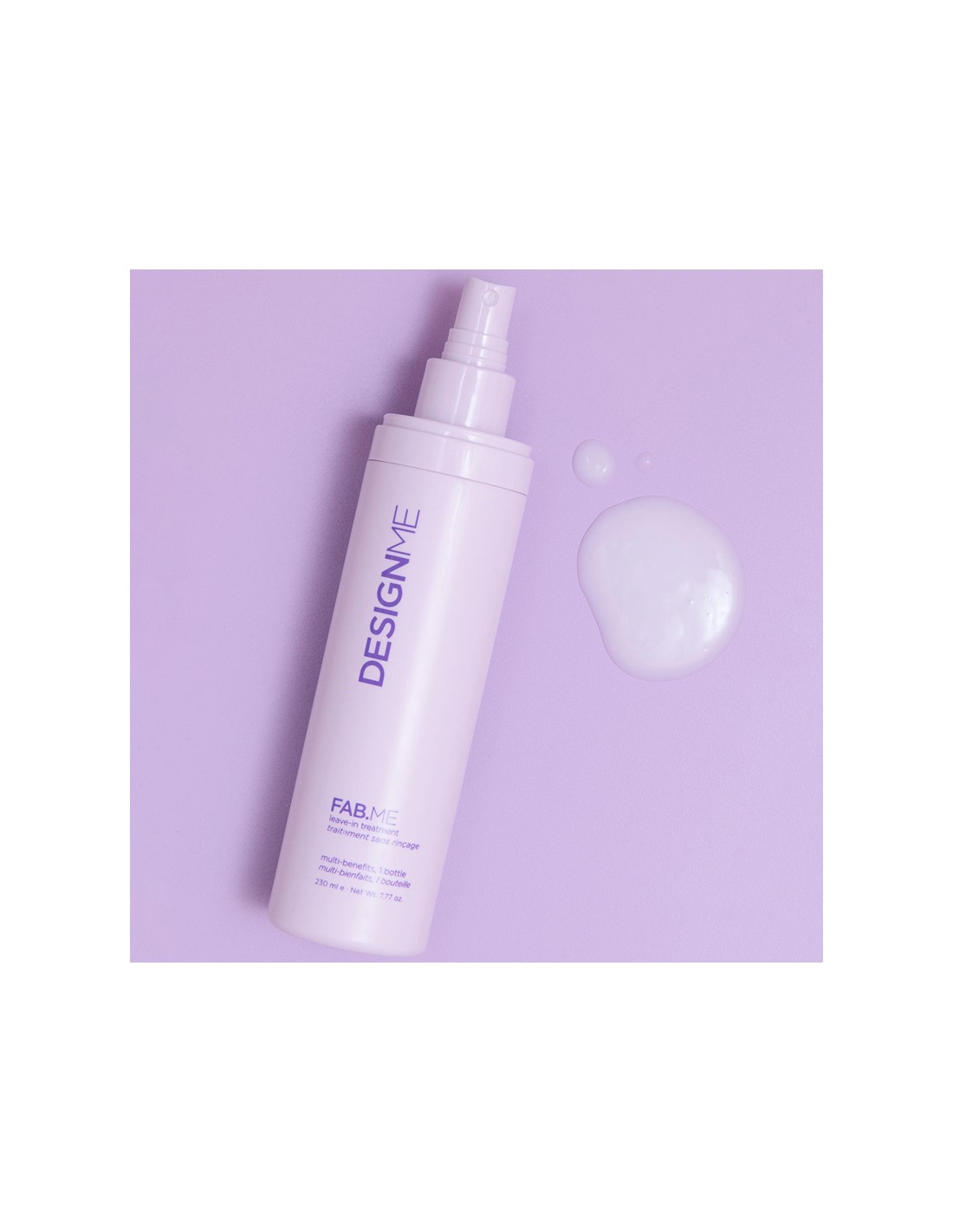 designME fabME Leave-In Treatment is a multi-benefit, lightweight spray that helps detangle, hydrate, smooth, and protect hair without weighing it down. Ideal for daily use, this leave-in treatment improves manageability, enhances softness and shine, and helps protect hair from heat and environmental stressors — perfect for all hair types, especially fine to medium hair.