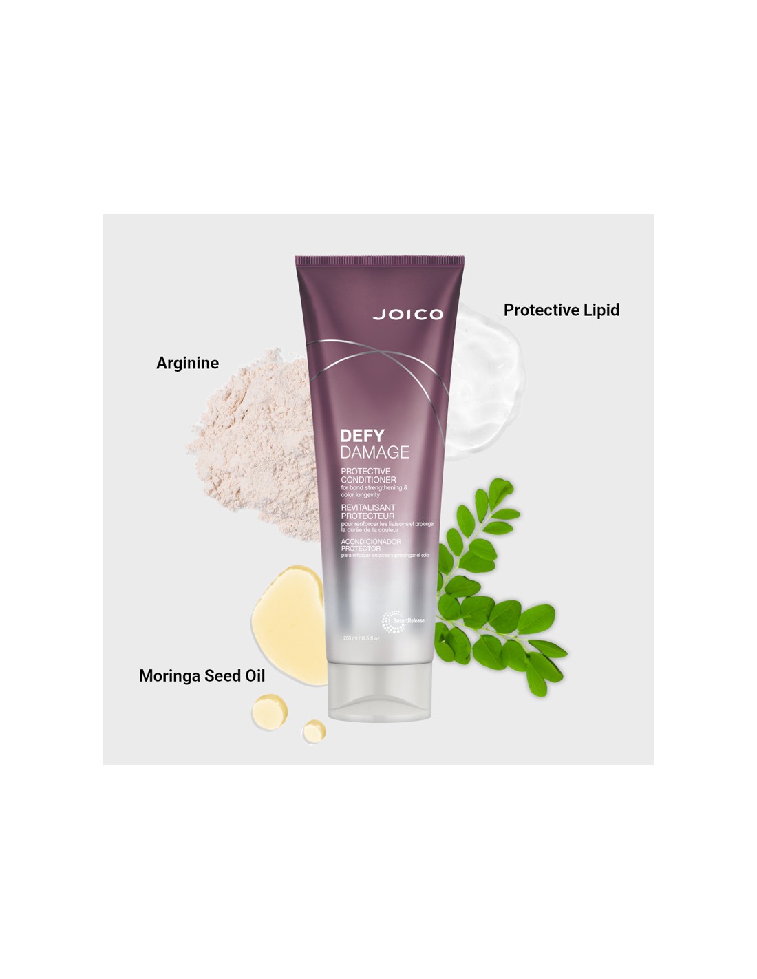 Joico Defy Damage Protective Conditioner is a strengthening, bond-protecting conditioner designed to help defend hair against the damaging effects of heat styling, chemical services, and environmental exposure. This lightweight yet nourishing formula instantly softens and detangles while helping to reinforce the hair structure for improved strength, resilience, and colour longevity.
