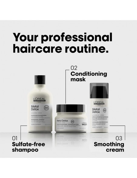 - Apply to clean, towel-dried hair after washing and conditioning with the Metal Detox range.