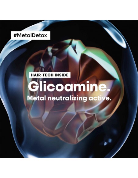 Protect your hair from metal damage, breakage, and colour fading with L’Oréal Professionnel Metal Detox Leave-In Cream — a revolutionary, multi-benefit treatment designed for colour-treated and lightened hair. Formulated with 1% Glicoamine, this lightweight cream neutralizes metal particles inside the hair fibre, preventing dullness and weakening caused by metals found in water.
