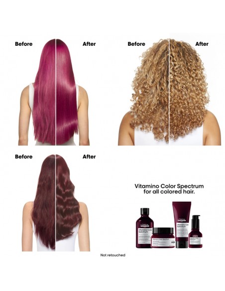 Apply as the final step of the Vitamino Color Spectrum routine to amplify shine and protect colour between salon visits.