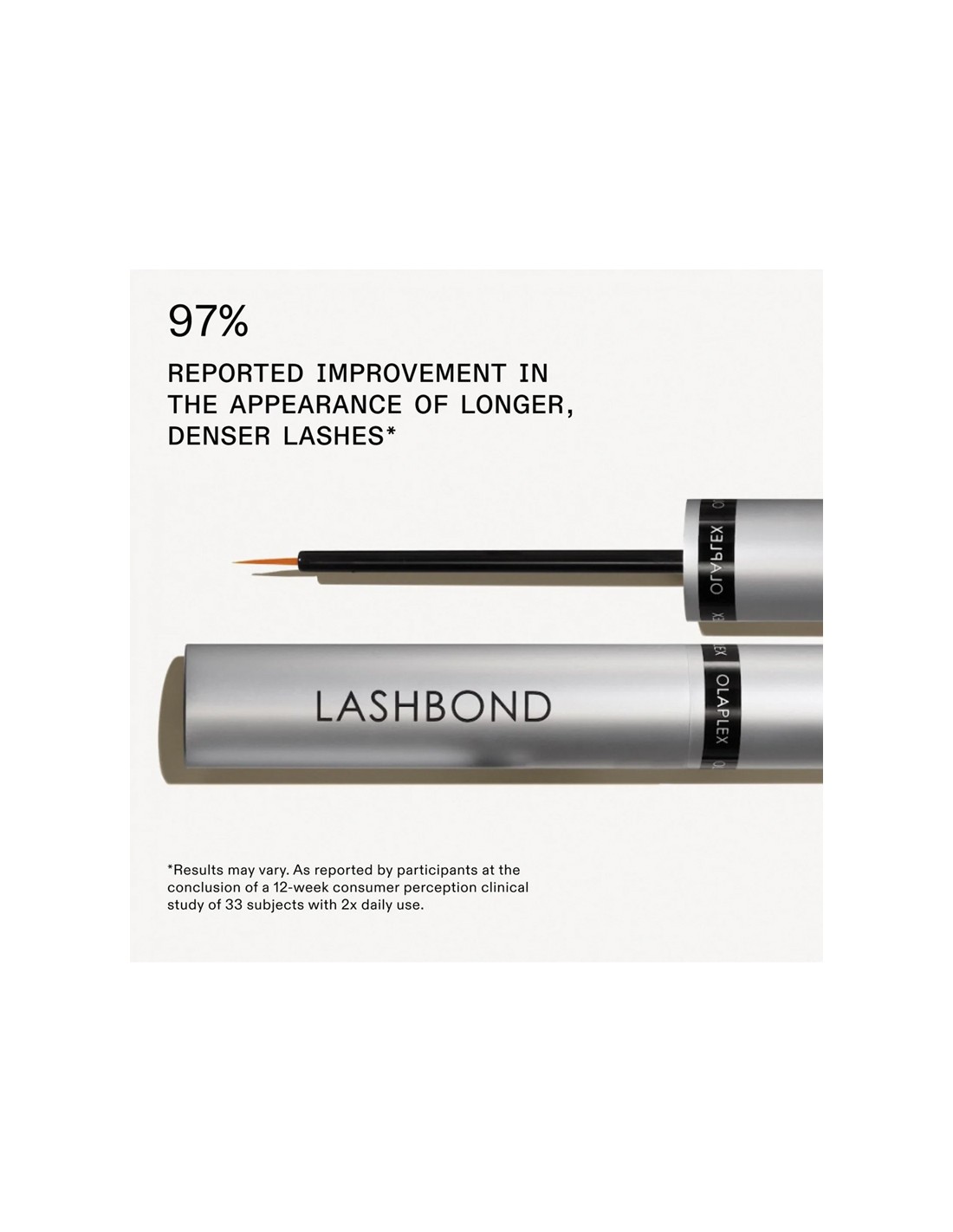Every swipe of this clear, lightweight lash serum delivers highly effective concentrations of NEW OLAPLEX Peptide Complex Technology™, OLAPLEX Bond Building Technology™, hydrating Hyaluronic Acid, and Biotin to the lash line to support and sustain the natural growth cycle and lash retention. Experience more conditioned, healthier-looking lashes In as little as 2 weeks and see the look of longer, fuller lashes in as little as 4 weeks. Get ready to see your full lash potential.