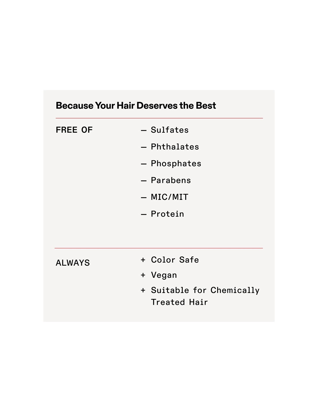 Free of DEA, Aldehydes and Formaldehyde.