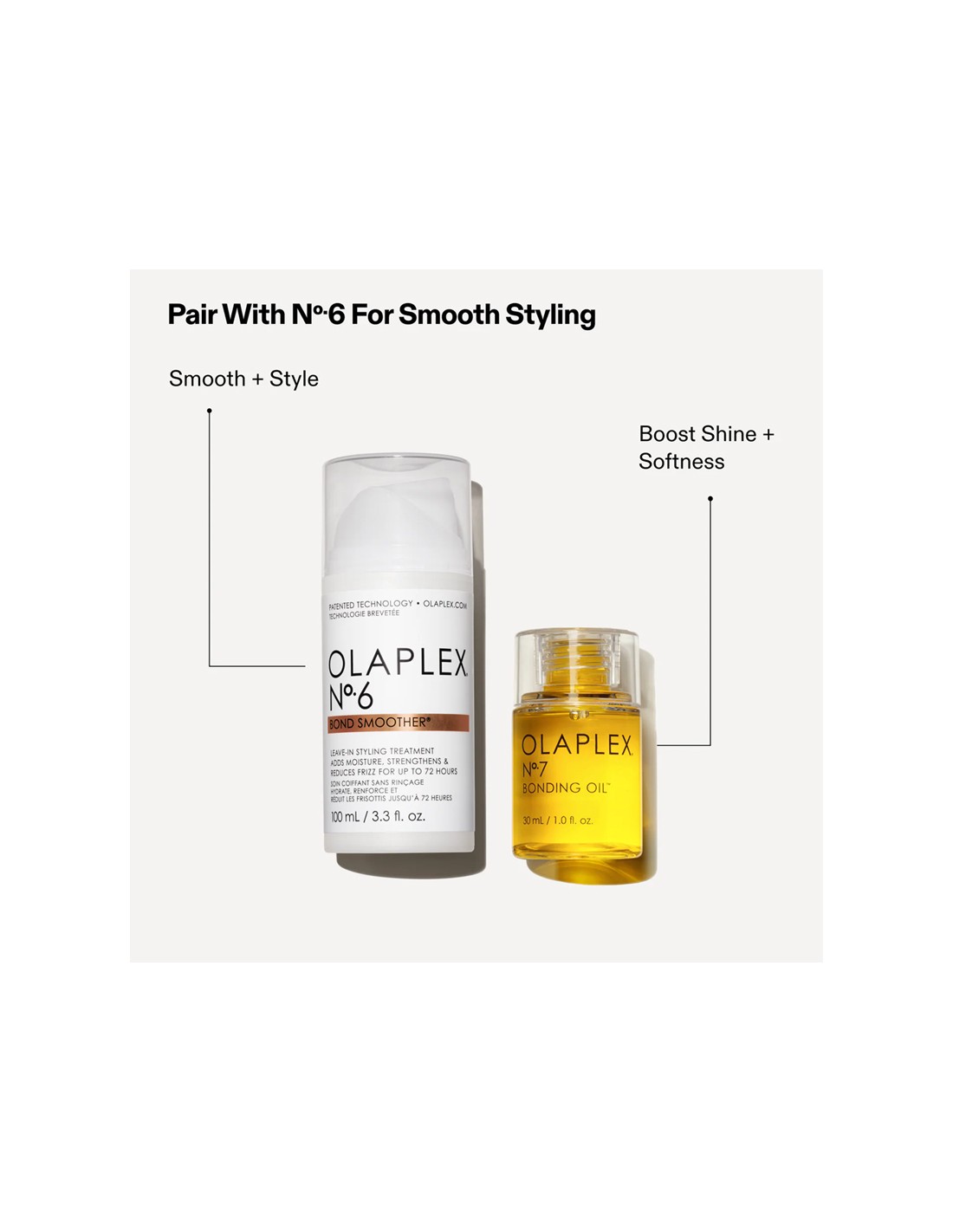 Tips: Mix a few drops of N°7 with a pea-sized amount of N°6 before styling for added smoothness & shine.