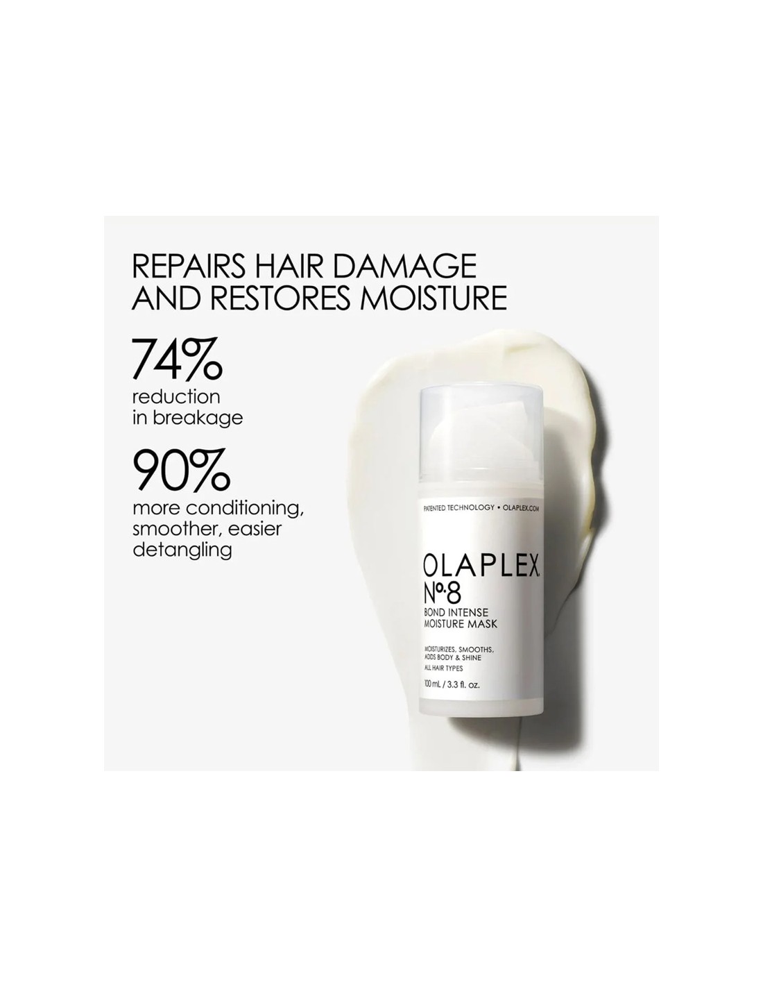 Infused with patented OLAPLEX Bond Building technology, this highly concentrated reparative mask adds shine, smoothness & body while providing intense moisture to treat damaged hair. Hair so visibly healthy, you can skip the styling.