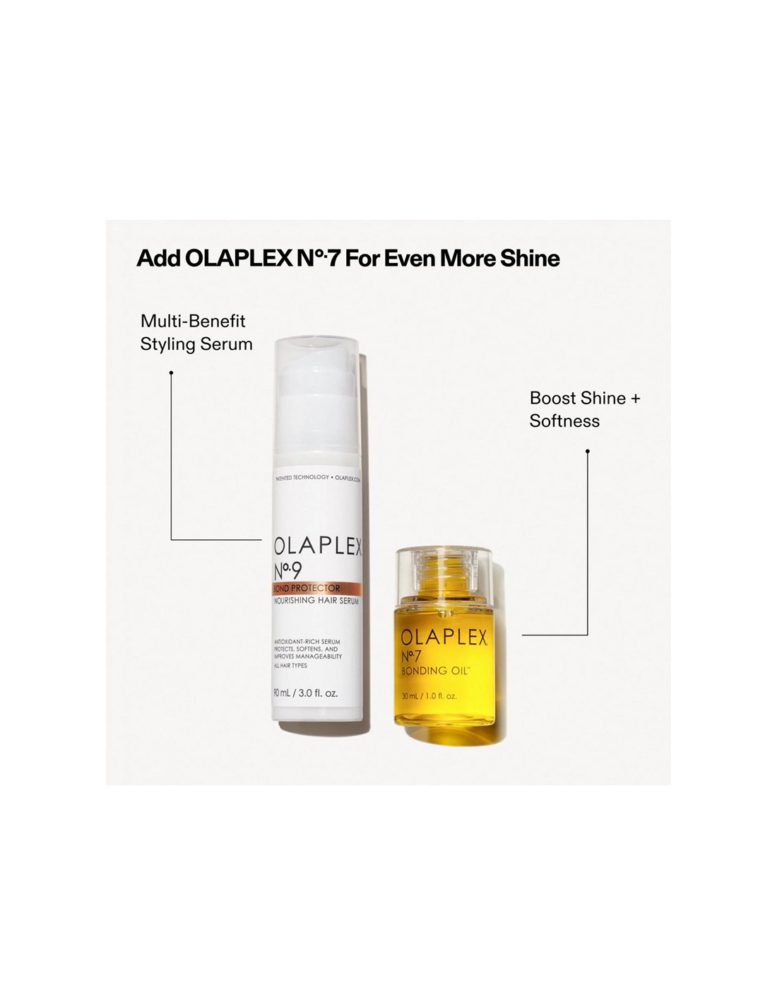 No.9 Bond Protector Nourishing Hair Serum protects your hair from daily damage. This weightless, leave-in, silicone-free hair serum shields hair from pollution for 48 hours and provides heat protection up to 450°F (232°C).