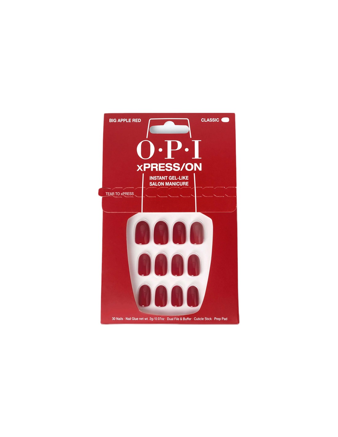 OPI xPRESS/ON Press-On Nails in Big Apple Red deliver a bold, classic red manicure with a high-gloss, salon-quality finish. Designed in a classic round shape, these reusable press-on nails provide a comfortable fit and long-lasting wear — all in minutes, with no dry time.