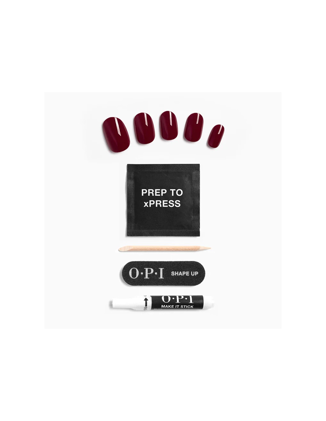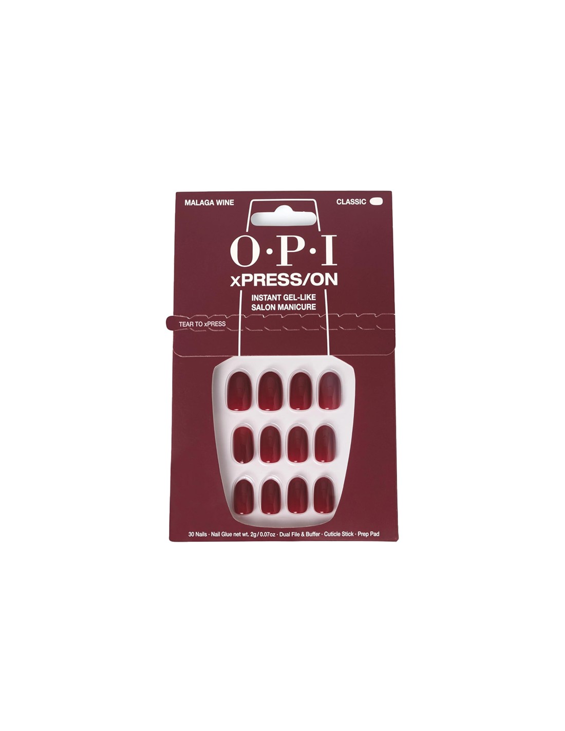 Each OPI xPRESS/ON kit offers professional-quality shades, nail art designs, and innovative effects—right at your fingertips. Mix and match colors and designs to create a custom manicure that fits your style. Every set includes nail glue, a cuticle stick, a dual nail file and buffer, an OPI prep pad, and 30 nails in multiple sizes for a precise, comfortable fit.