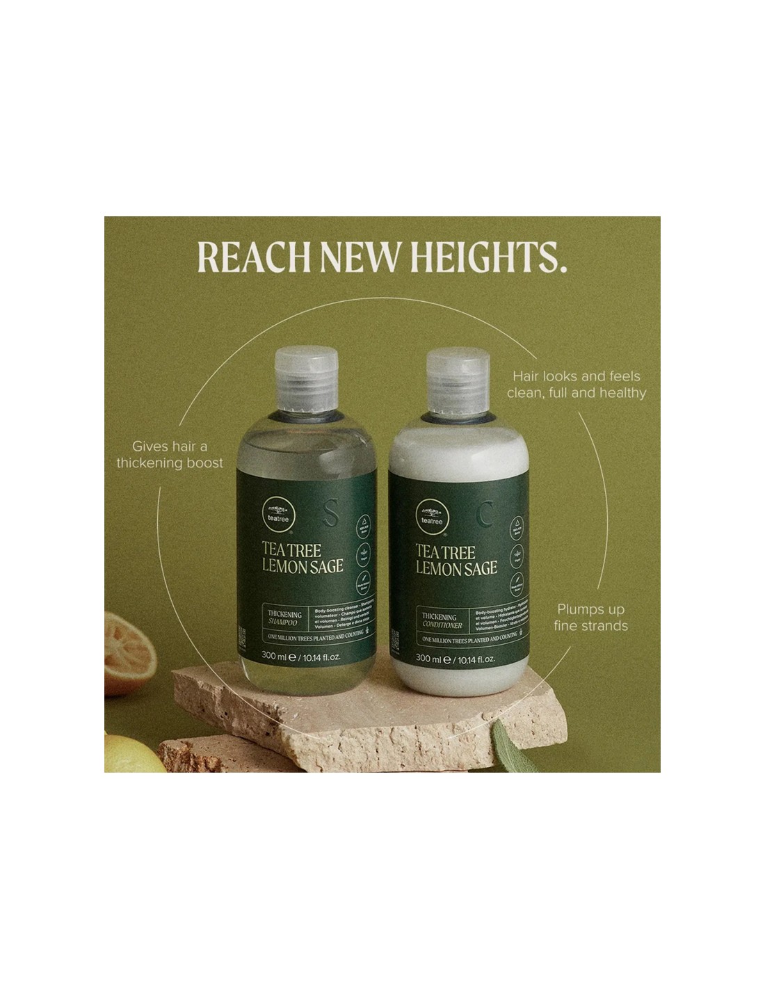 - After shampooing with Tea Tree Lemon Sage Thickening Shampoo, apply to clean, damp hair.