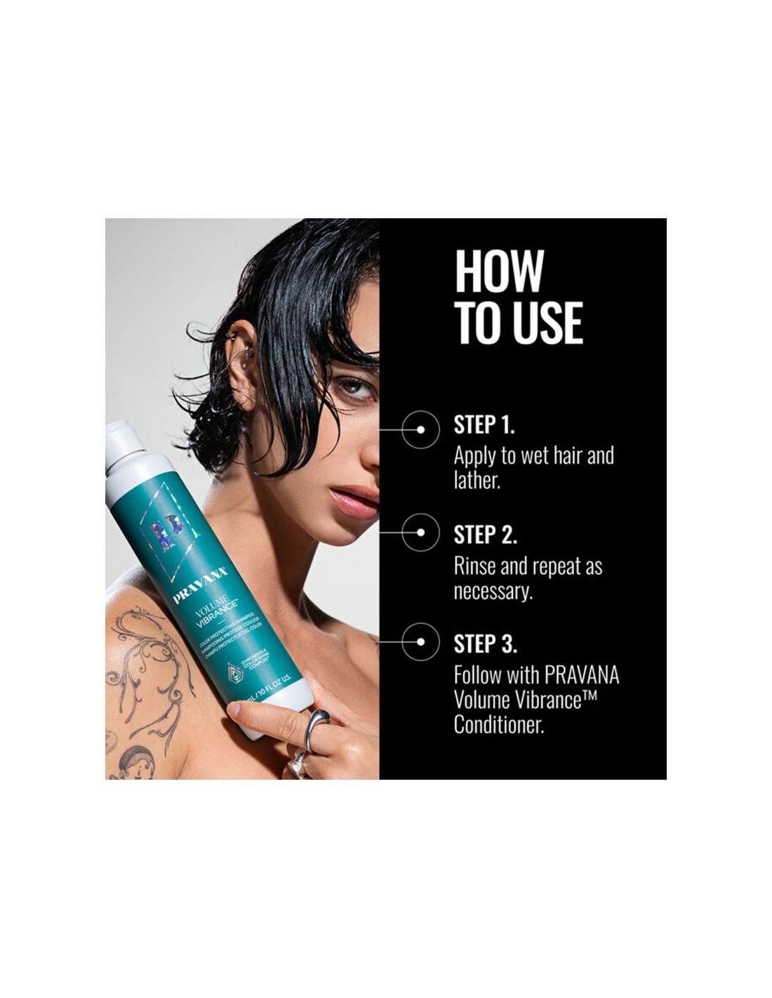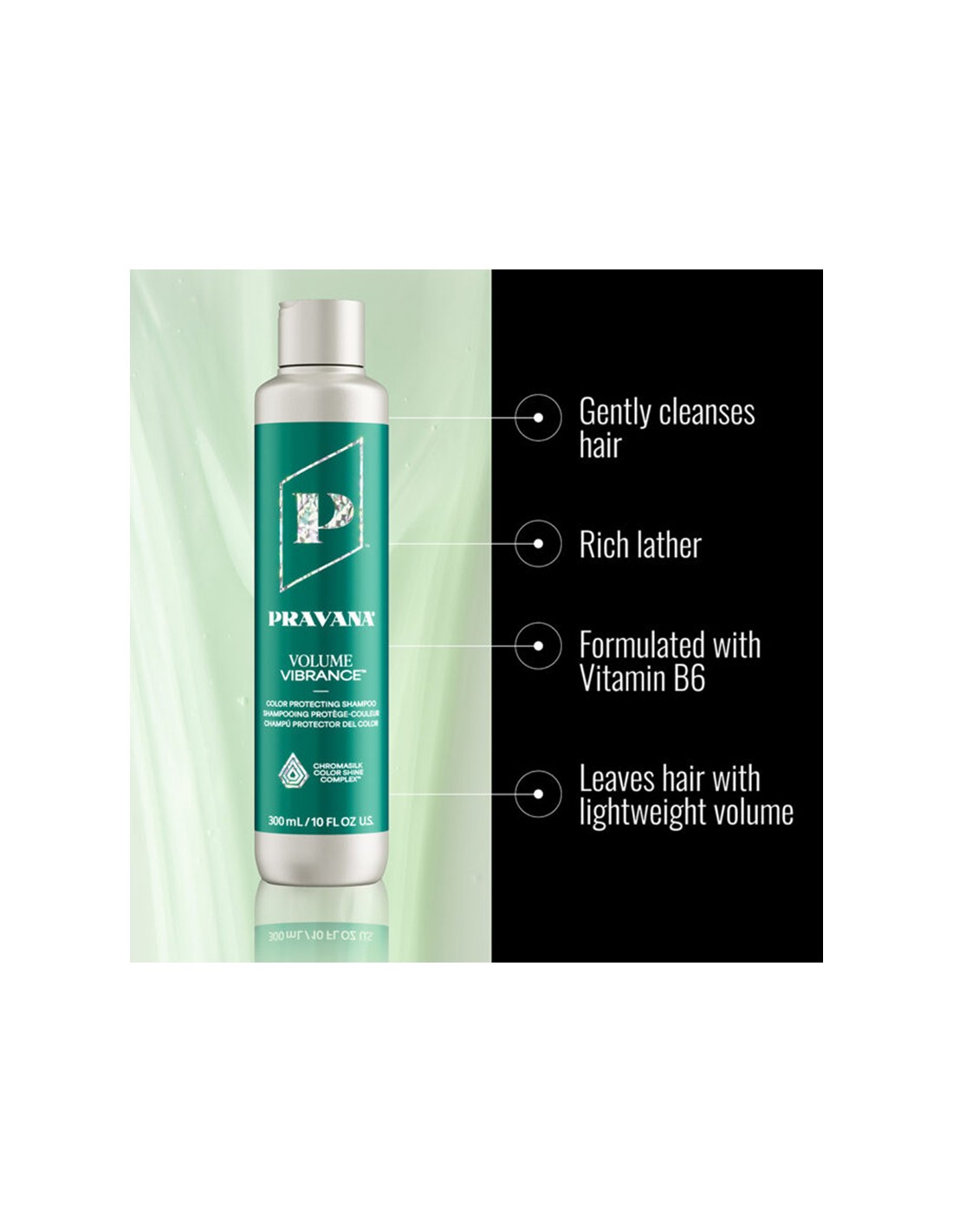 The Pravana Volume Vibrance Color-Protecting Shampoo is a weightless, sulfate-free formula designed specifically for fine, limp, or color-treated hair. It gently cleanses without stripping essential moisture, adding airy lift and body while protecting color vibrancy for up to 30 washes when paired with the matching conditioner.