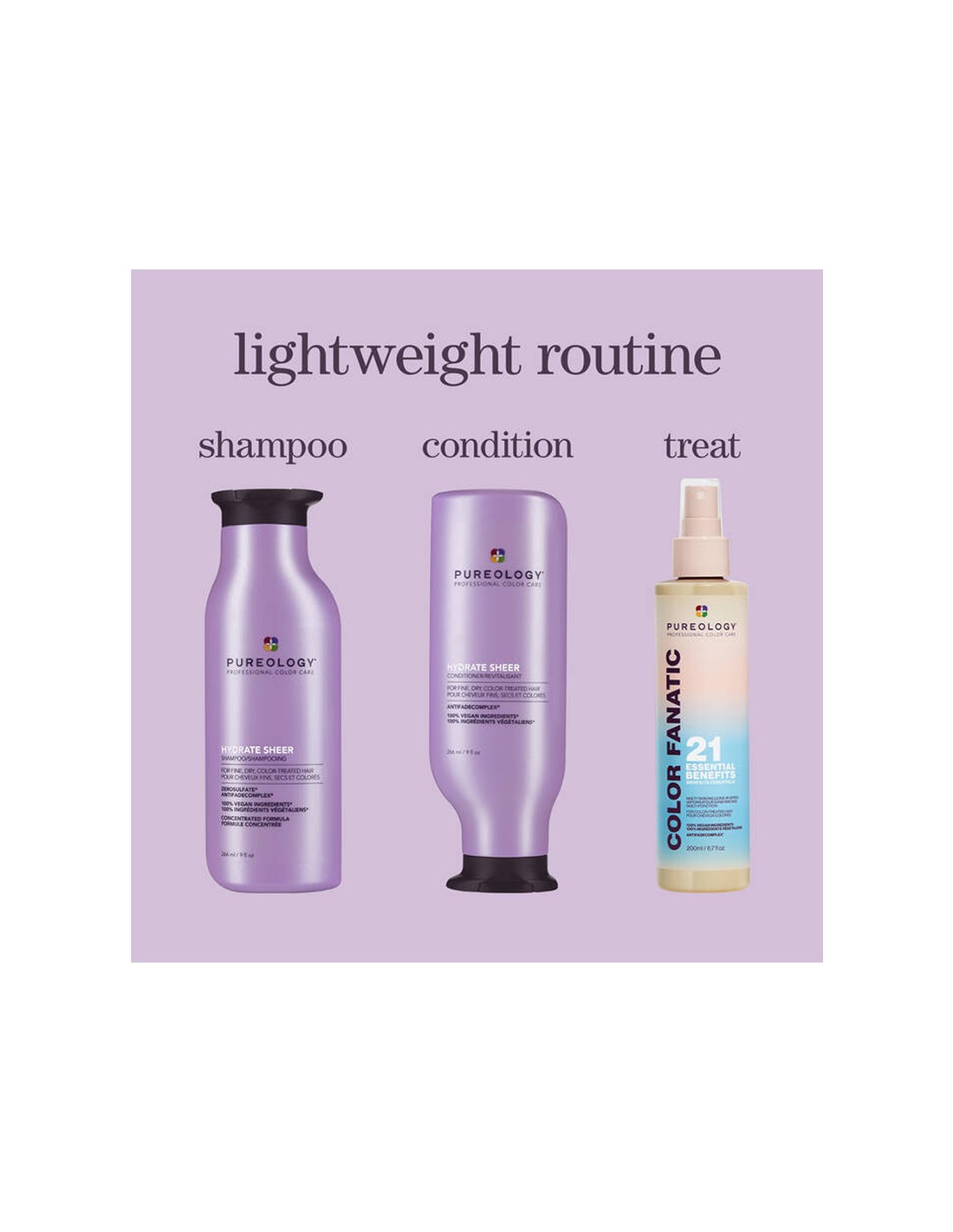 - Hydrate Sheer Shampoo 266ml – Lightweight, sulfate-free cleanser that delivers moisture while protecting color vibrancy.
