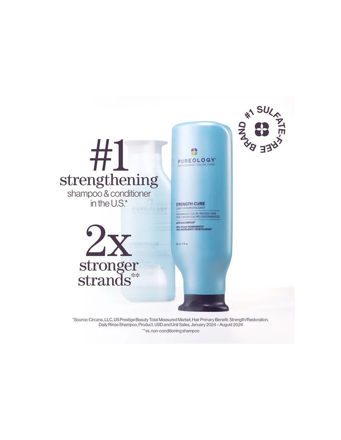 Treat damaged, color-treated hair with precision and care using Pureology Strength Cure Conditioner. Crafted with a rich, concentrated formula free of sulfates and cruelty, this conditioner delivers intense repair and hydration while preserving your color. Enhanced with powerful Keravis® plant protein and Astaxanthin—a renowned antioxidant—it strengthens strands from within, smooths unruly texture, and protects color brilliance through Pureology’s exclusive AntiFade Complex®. A soothing aromatherapy blend of raspberry, peach, and water-flower oils elevates every application into a sensory indulgence.