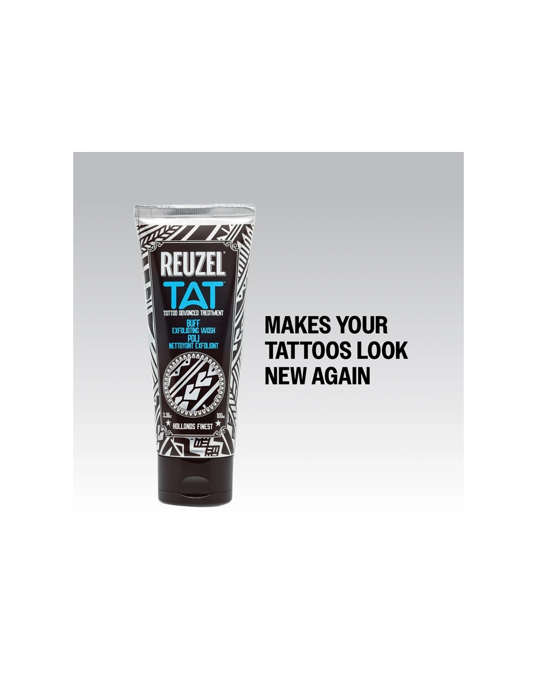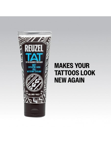 Elevate your tattoo care with BUFF tattoo scrub. This gentle cleanser removes dry, dead skin, allowing your vibrant colors to shine through. Avoid harsh scrubs that can fade your ink and skin tone. Embrace the natural ingredients of BUFF that highlight what you want and eliminate what you don't. Discover the ultimate tattoo skincare experience with Reuzel's TAT line.