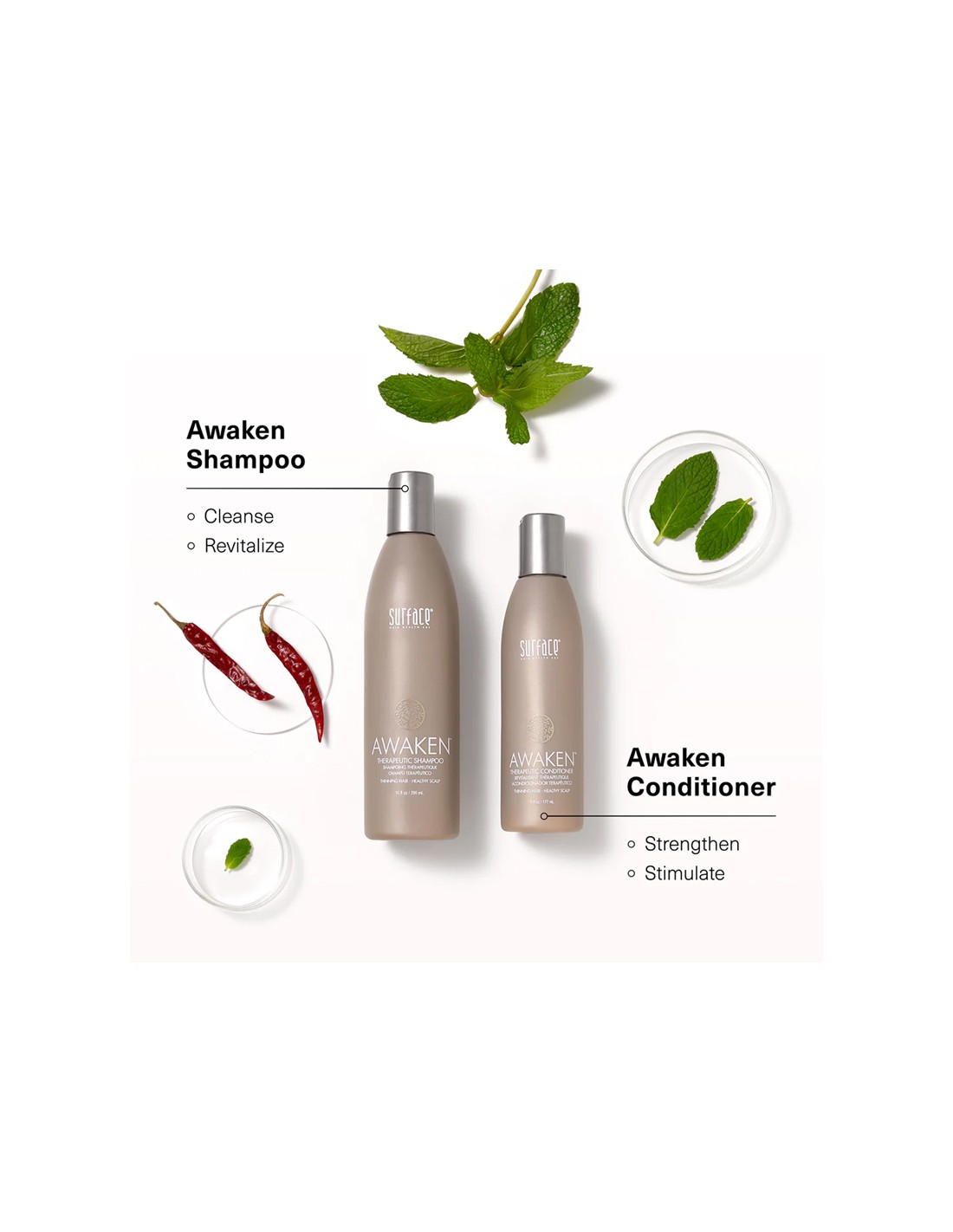 Surface Awaken Therapeutic Conditioner is a lightweight, revitalizing conditioner designed to nourish the hair while supporting a refreshed, balanced scalp. Ideal for fine or thinning hair, it helps improve manageability and softness without weighing hair down. Used alongside Awaken Therapeutic Shampoo, it leaves hair feeling healthier, smoother, and energized.