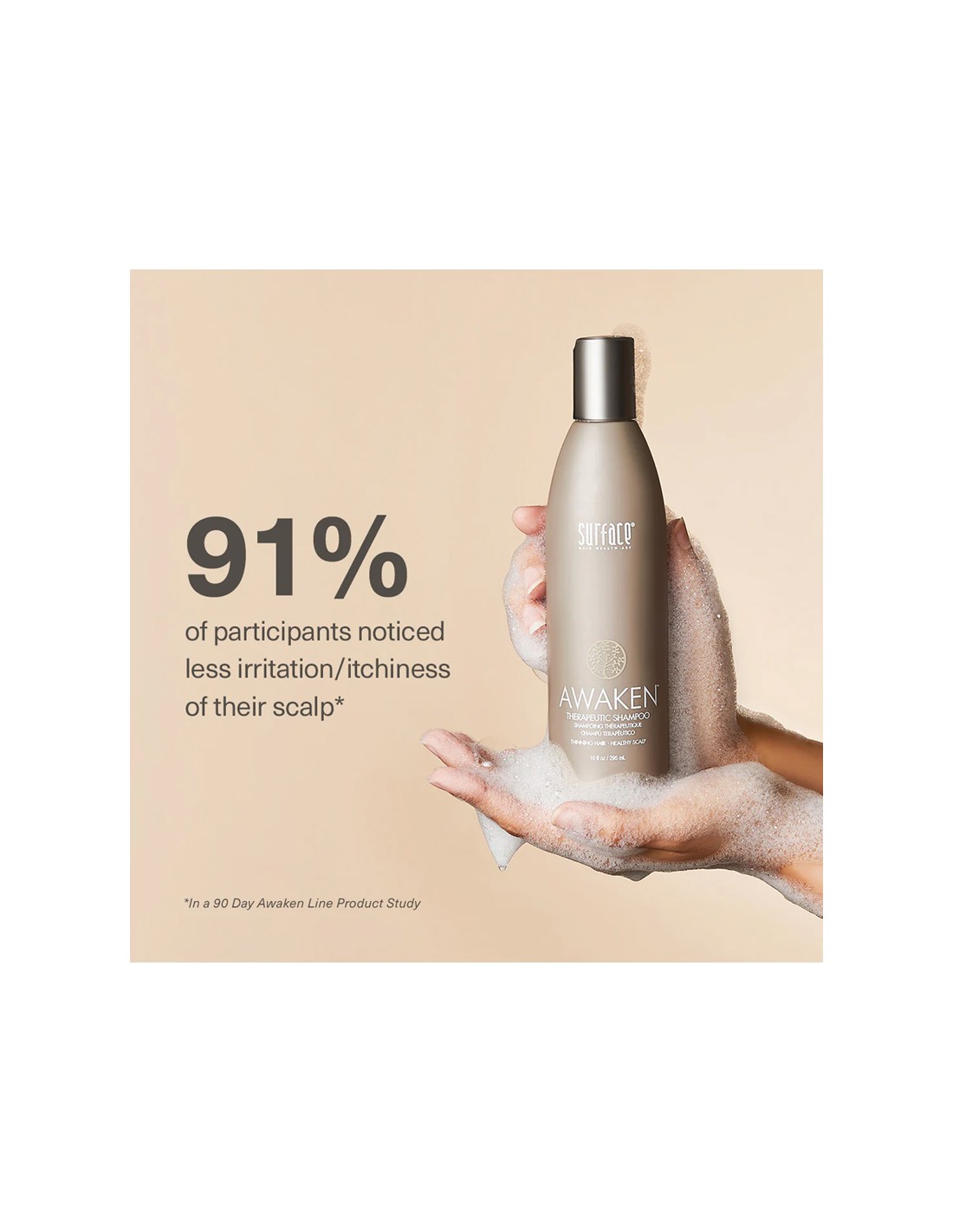 Surface Awaken Therapeutic Shampoo is a revitalizing scalp and hair cleanser designed to help stimulate the scalp, refresh the hair, and support fuller-looking results. Formulated to gently cleanse while energizing the scalp, it helps remove buildup, improve scalp comfort, and leave hair feeling clean, balanced, and invigorated. Ideal for thinning or fine hair, it supports a healthier scalp environment without drying.