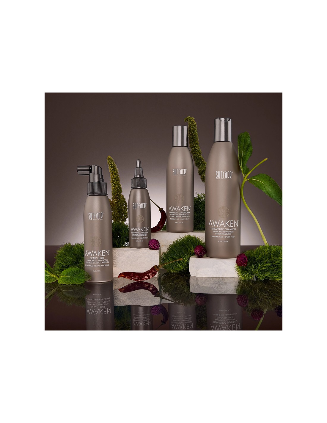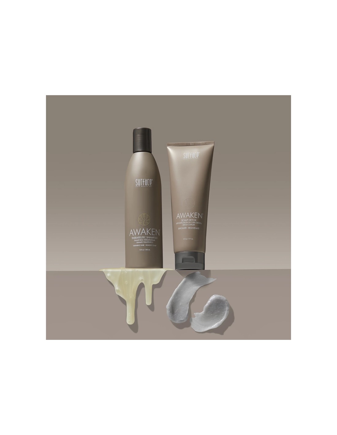 Surface Awaken Therapeutic Shampoo is a revitalizing scalp and hair cleanser designed to help stimulate the scalp, refresh the hair, and support fuller-looking results. Formulated to gently cleanse while energizing the scalp, it helps remove buildup, improve scalp comfort, and leave hair feeling clean, balanced, and invigorated. Ideal for thinning or fine hair, it supports a healthier scalp environment without drying.
