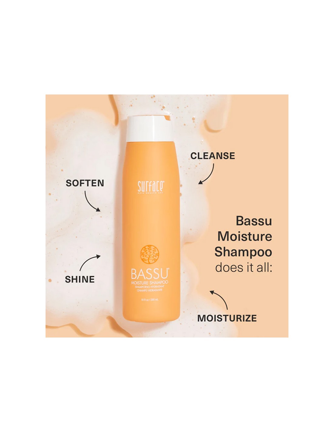 Surface Bassu Moisture Shampoo is a gentle, hydrating shampoo formulated to cleanse while restoring moisture to dry and damaged hair. Enriched with organic Babassu Seed Oil and Moringa Oil, it softens, soothes, and adds shine while maintaining healthy moisture balance. This weightless formula cleanses without stripping, leaving hair smooth, hydrated, and manageable.