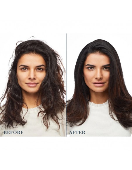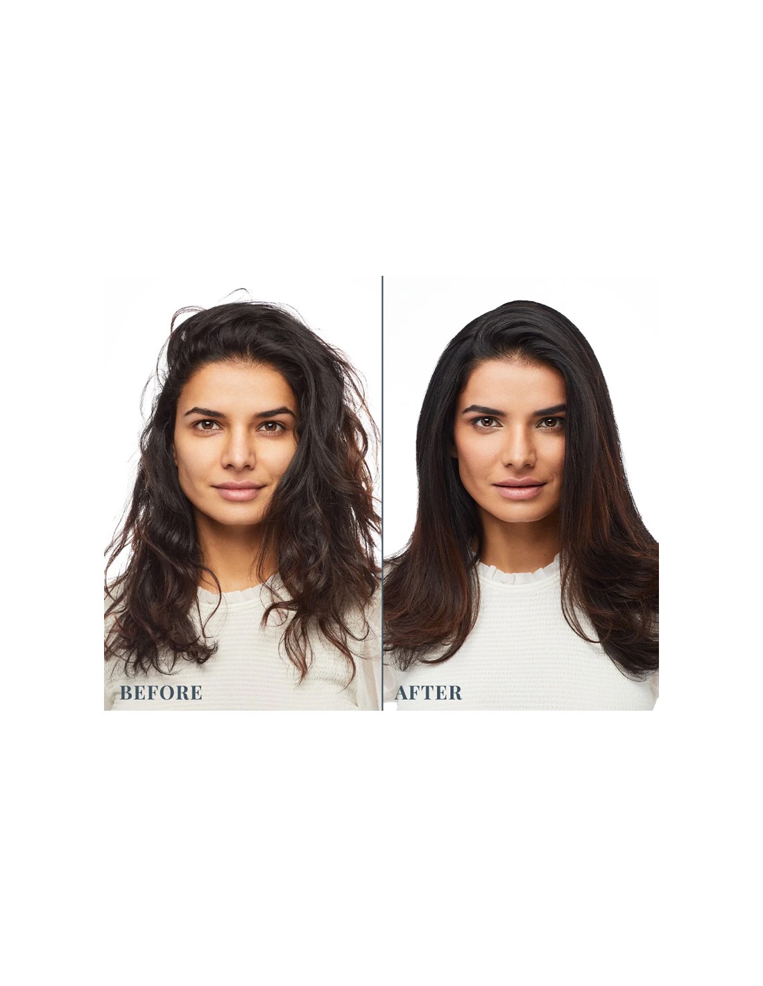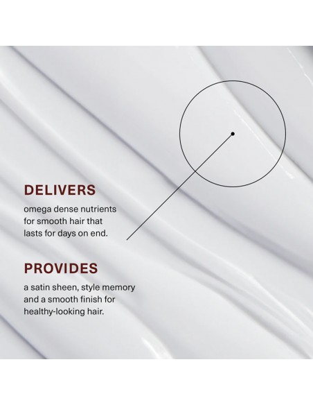 - Apply to damp hair from ends up and blow-dry hair smooth.