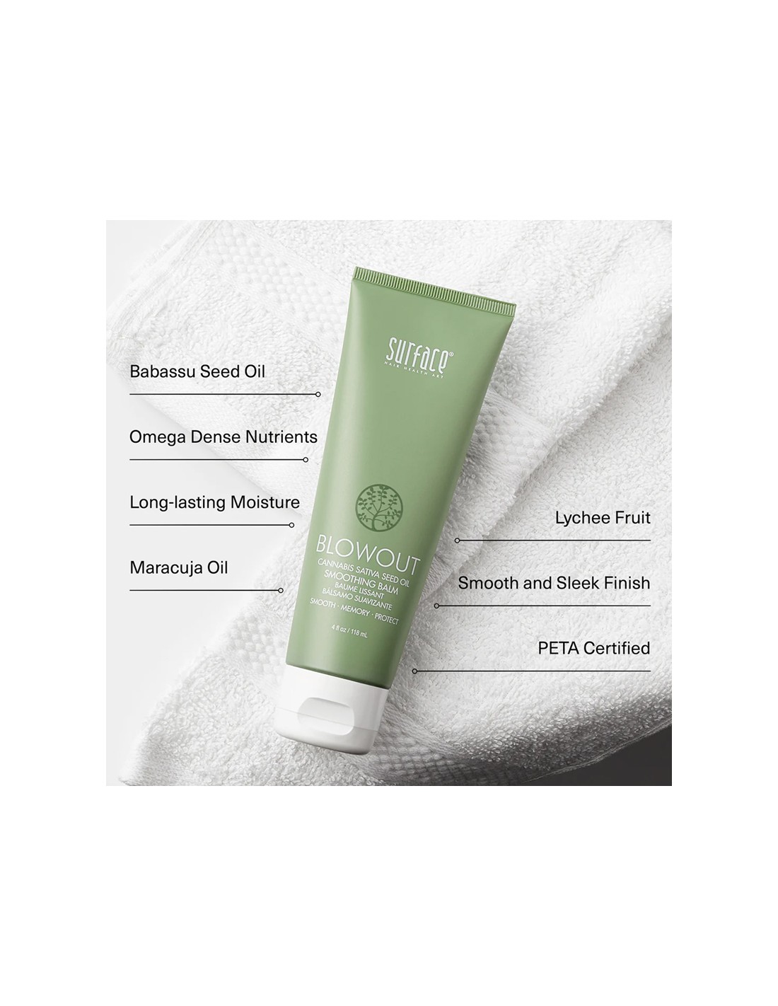 Surface Blowout Smoothing Balm is a lightweight smoothing cream designed to tame frizz, enhance manageability, and support sleek, polished blowouts. It helps smooth the hair cuticle, improve softness, and add natural-looking shine while keeping hair flexible and touchable. Ideal for all hair types, especially frizz-prone or unruly hair, this balm creates a smooth foundation for heat styling without heaviness.