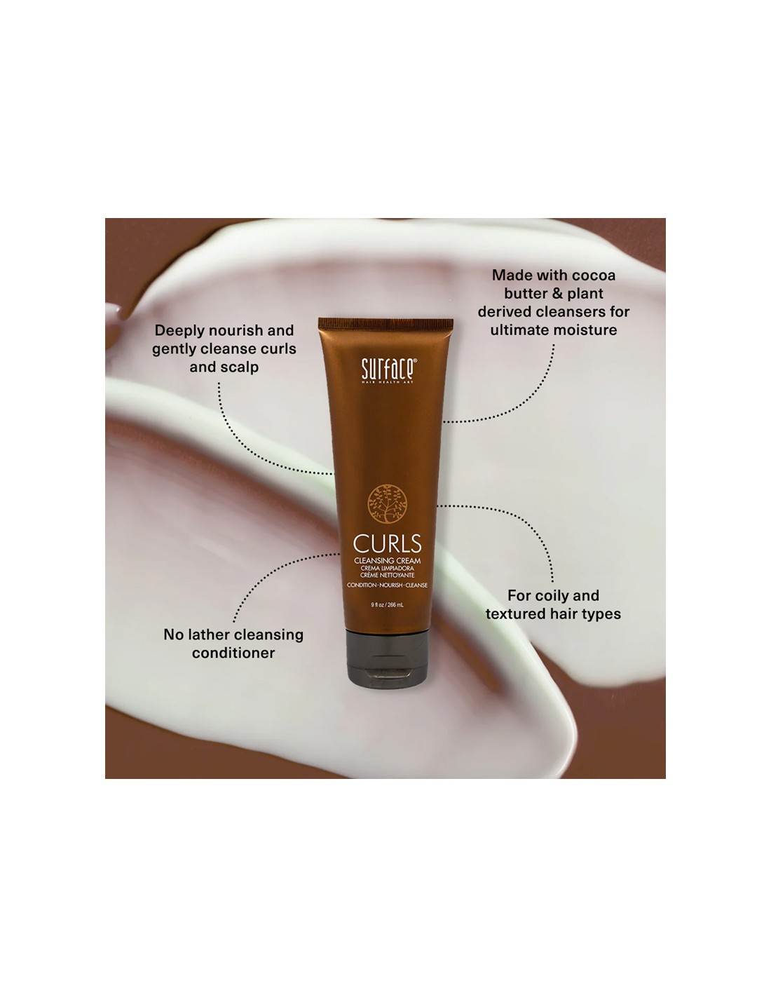 Surface Curls Cleansing Cream is a gentle, sulfate-free cleansing conditioner designed to cleanse curls while maintaining essential moisture. Ideal for wavy, curly, and coily hair, this creamy cleanser removes buildup without stripping natural oils—helping curls stay soft, defined, and frizz-controlled. It’s perfect for dry, textured hair types that need a more hydrating cleanse between traditional shampoo days.