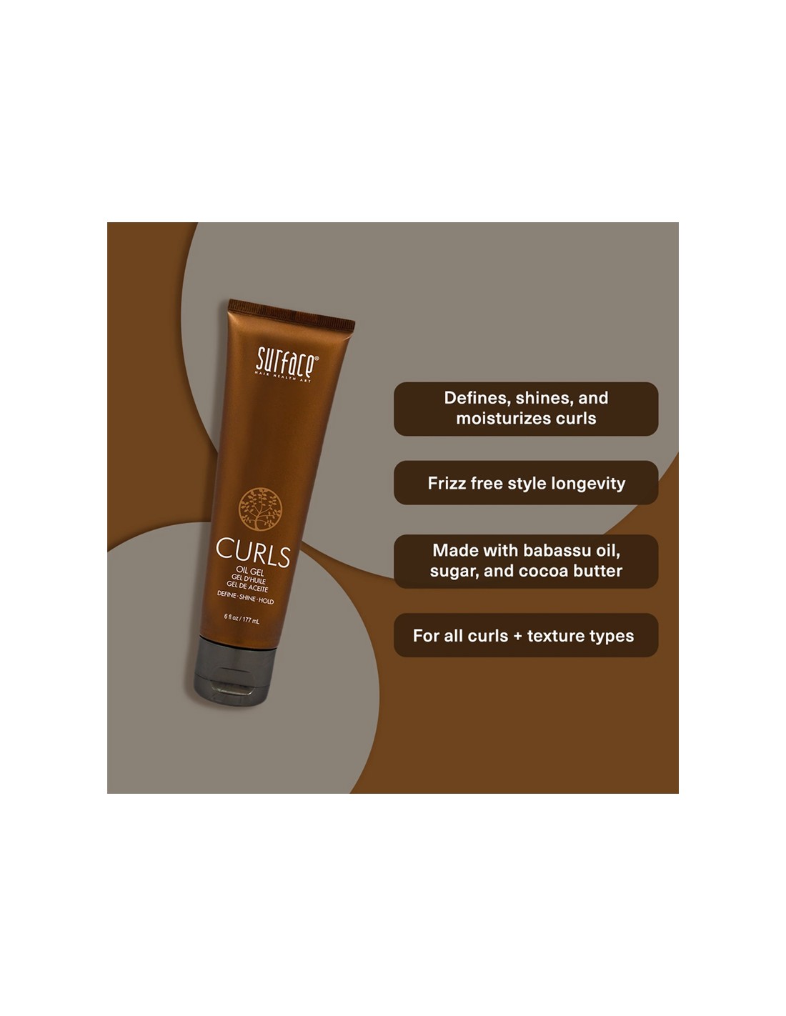 Surface Curls Oil Gel is a hydrating, curl-defining styling gel designed to combine the control of a gel with the nourishment of an oil. It helps enhance curl shape, reduce frizz, and add soft shine while keeping curls flexible and touchable—not stiff or crunchy. Ideal for waves, curls, and coils, this lightweight formula supports long-lasting definition and smoother, more polished texture.