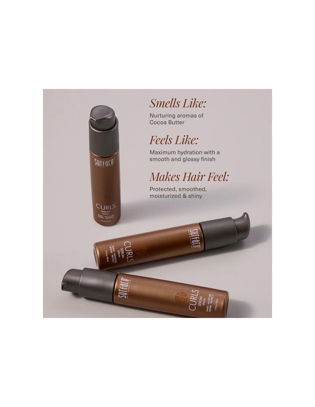 Surface Curls Serum is a lightweight curl-enhancing serum designed to smooth frizz, boost definition, and add soft shine without weighing curls down. Ideal for waves, curls, and coils, it helps improve manageability and supports long-lasting shape and separation for a polished, touchable finish.