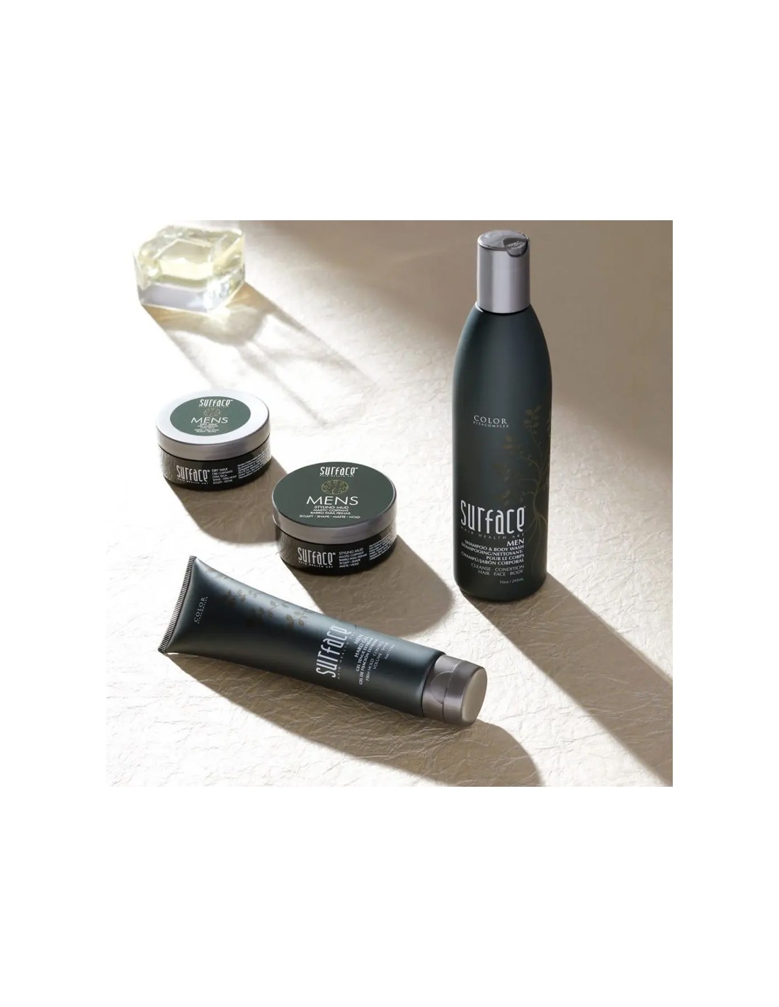 Surface Men Styling Mud is a matte styling mud designed to shape, sculpt, and hold hair with flexible, strong fibers. Infused with Flax and Bamboo, it delivers textured control and a natural matte finish for modern, structured styles.