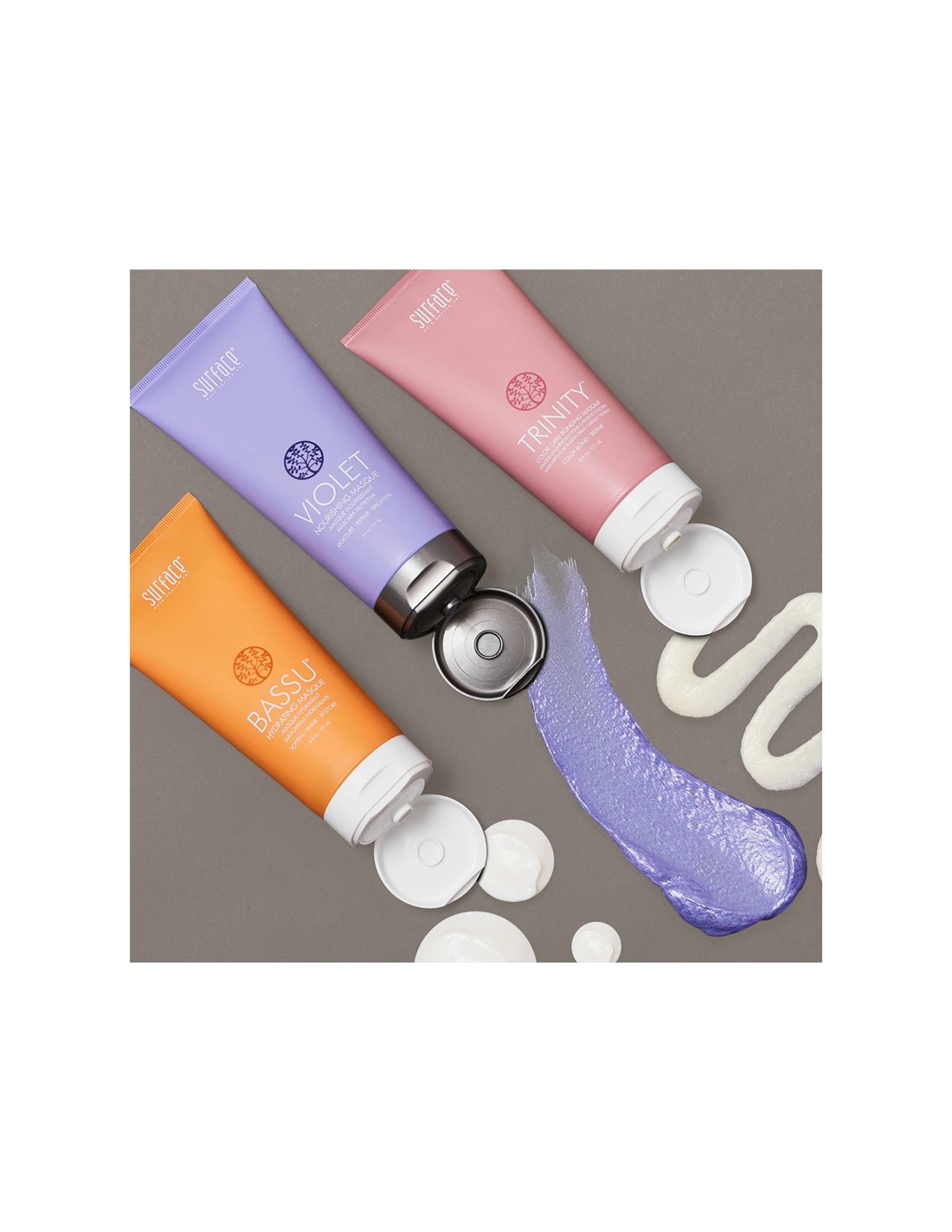Surface Pure Blonde Violet Nourishing Masque is a luxurious, deep-conditioning violet treatment created to tone, strengthen, and intensely hydrate blonde, silver, highlighted, or lightened hair. Formulated with a concentrated violet pigment blend and powerful plant-based actives, this masque helps neutralize unwanted yellow and brassy tones, restore moisture to dry or over-processed hair, and enhance cool-toned brightness. Hair is left softer, stronger, smoother, and visibly more radiant after each use.