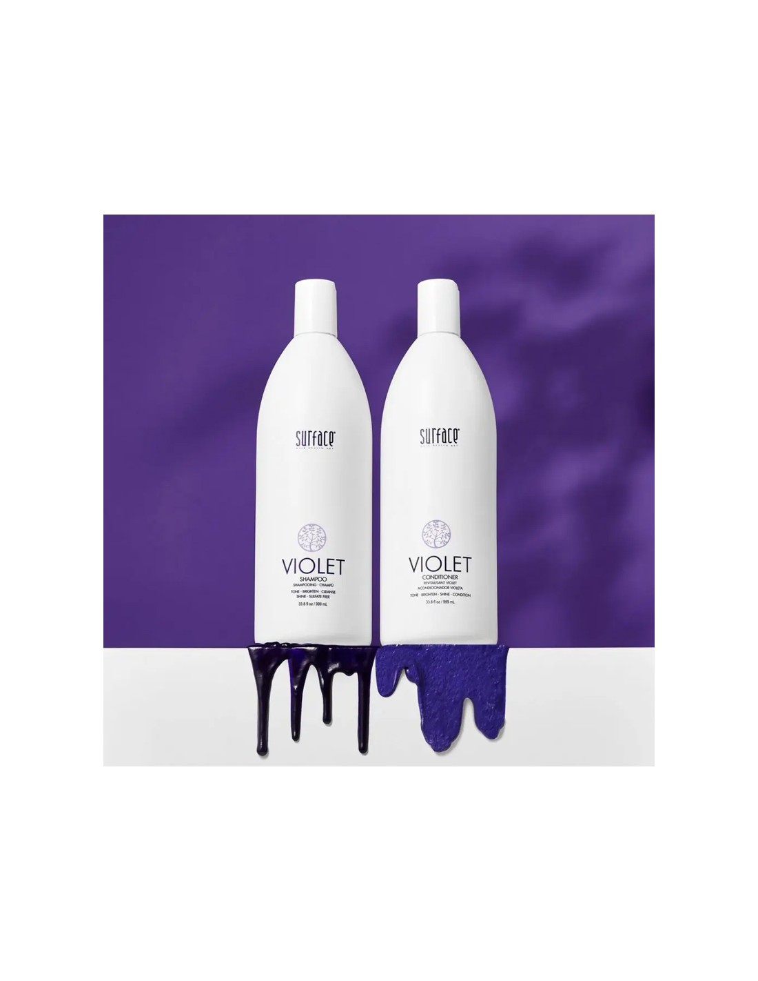 Surface Pure Blonde Violet Shampoo is a premium toning cleanser expertly formulated to neutralize unwanted yellow and brassy tones in blonde, lightened, silver, or gray hair. This salon-grade violet shampoo gently cleanses while depositing balanced violet pigments to brighten, refine, and restore clarity to blonde shades. Enriched with nourishing botanicals and strengthening proteins, it leaves hair cool-toned, luminous, and beautifully conditioned—never dry or dull.