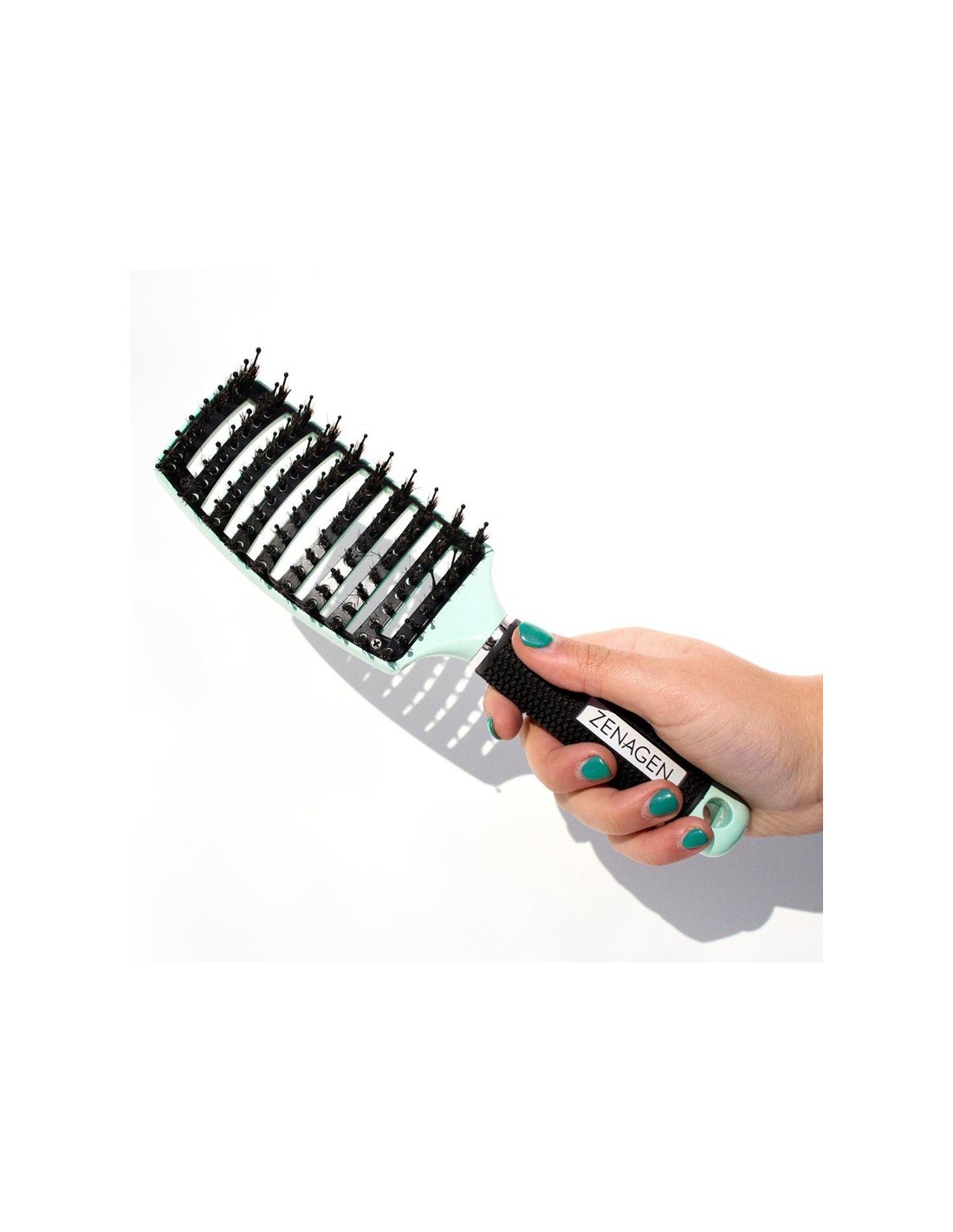 The Zenagen Zen Brush is a lightweight, flexible brush designed to gently detangle hair while minimizing breakage and scalp stress. Ideal for daily use, it glides smoothly through wet or dry hair, helping reduce pulling and supporting healthier-looking hair—especially for fine, thinning, or fragile hair.